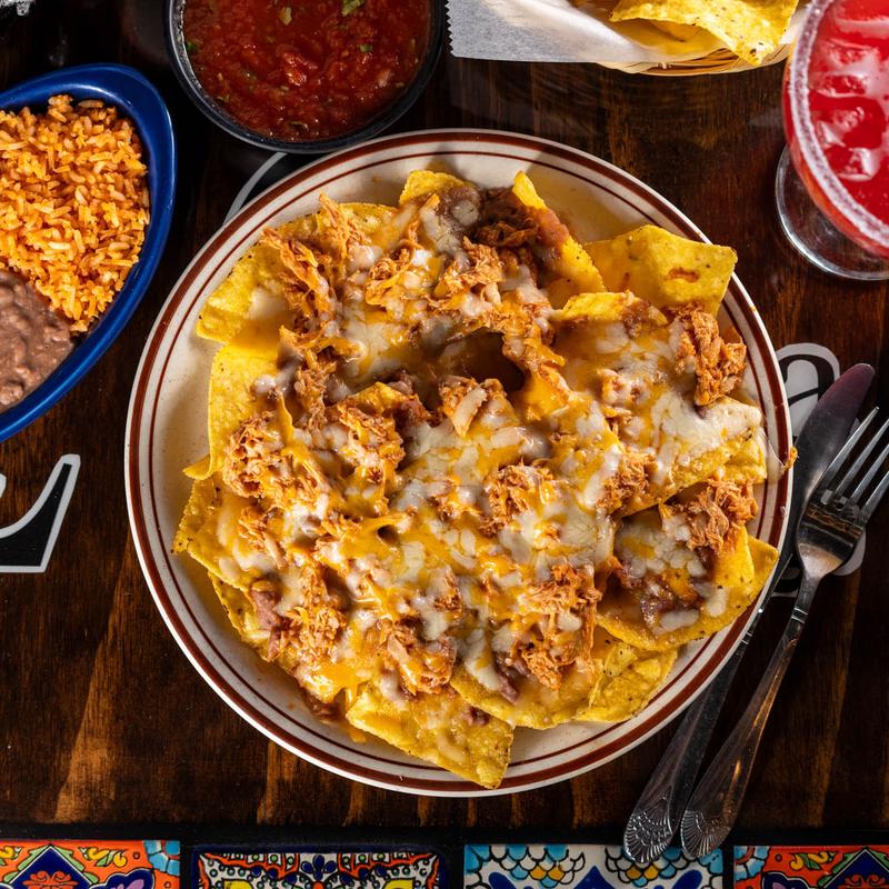 Crispy tortilla chips smothered with refried beans, melted cheese, guacamole and sour cream. Garnished with lettuce, tomatoes and sweet dressing. *Rice and beans additional • Half-Order $12.99 | Full-Order $15.99• Add Chicken $2.00 | Add Beef $3.50 | Add Steak $4.00